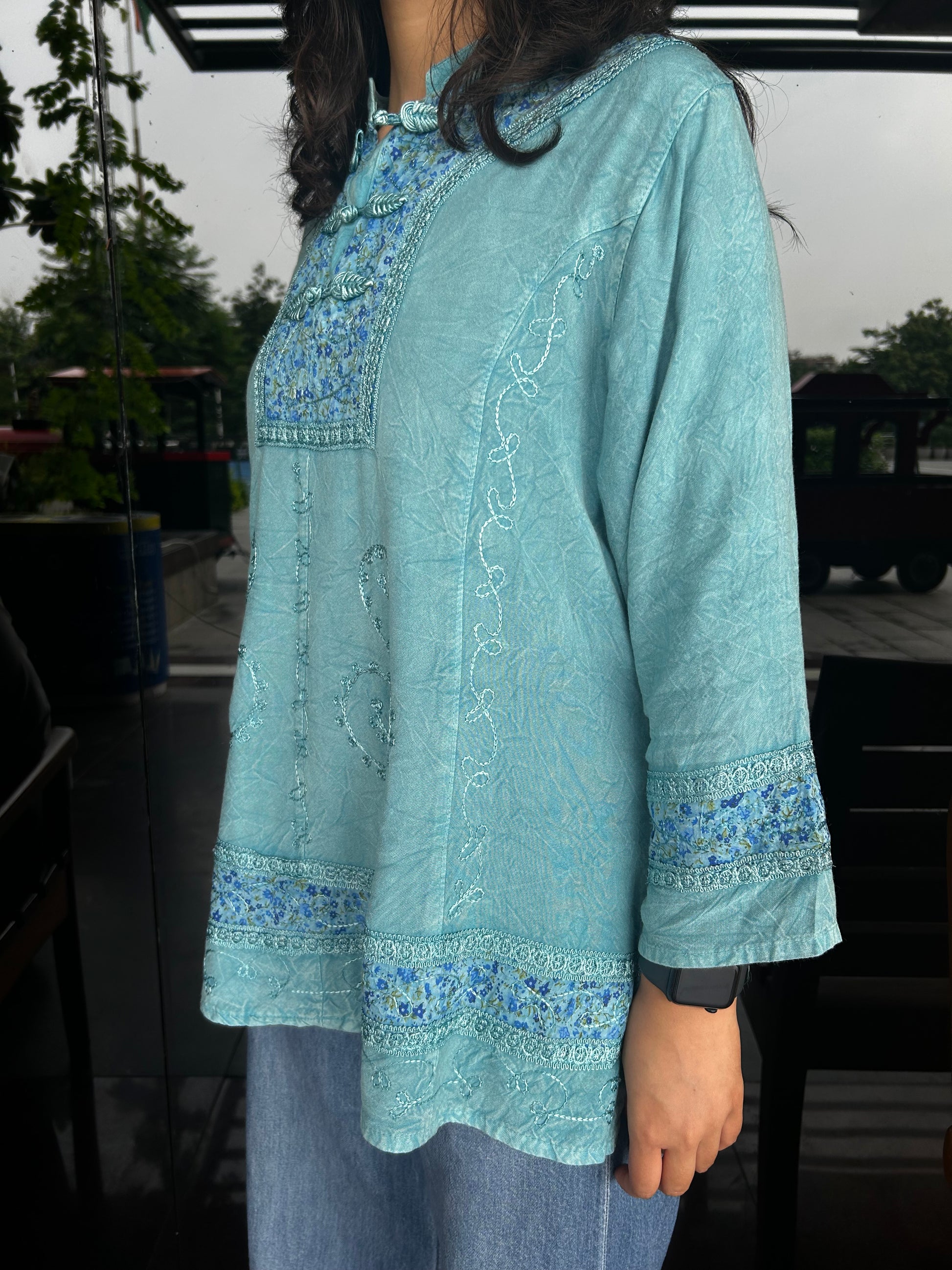 • Design: Mandarin neckline with knot closures, 3/4th sleeves,