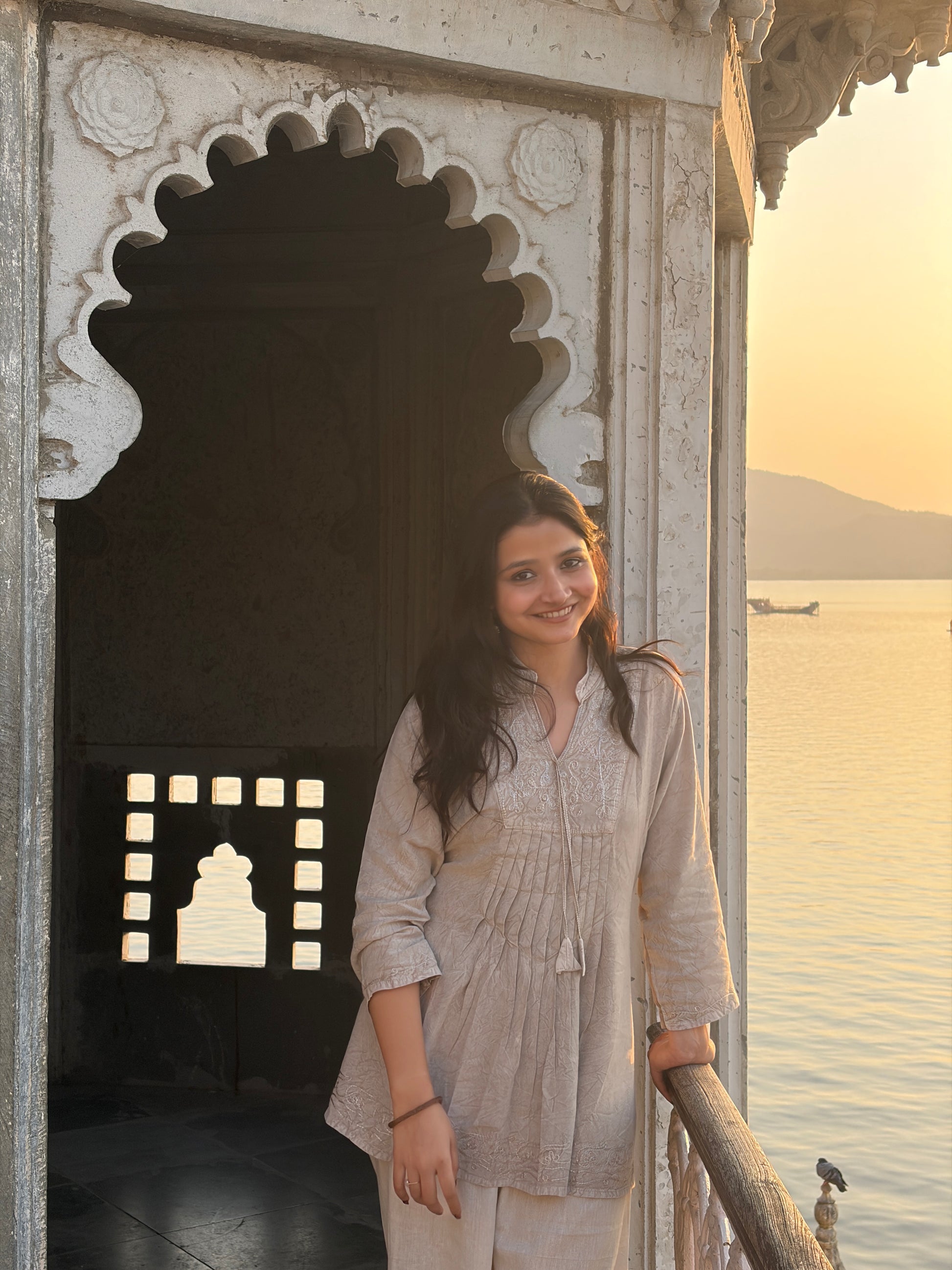 Each Udisha piece comes with a back tie-thread, allowing you to adjust the waist to your liking. Whether you prefer a loose flowy silhouette or a slightly defined waist, Udisha adapts beautifully to your style and comfort.